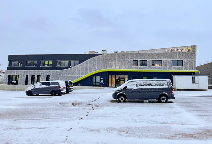 Notre bâtiment sous la neige