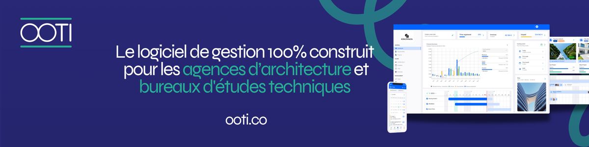 OOTI est un logiciel de gestion tout-en-un conçu spécifiquement pour les cabinets d’architecture et les bureaux d’études. Il centralise dans une seule plateforme le pilotage des opportunités, la gestion de projet (phases, tâches, charge), l’organisation de l’équipe et des rôles, le suivi du temps/budgets/coûts, ainsi que la facturation et la vision financière globale. L’idée est de simplifier l’administratif, gagner du temps et garder une vue claire sur la rentabilité et l’avancement des projets, sans multiplier les fichiers Excel.