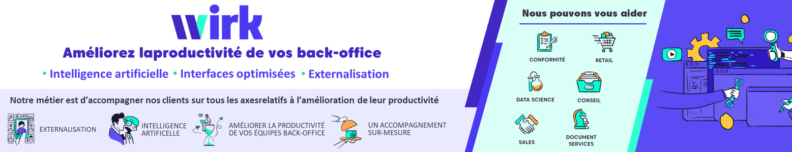 Wirk est la première Startup de crowdsourcing en France. Nous éditons des sites permettant à nos clients d’externaliser des taches de backoffice : Wirk App, Wirk Desk, Foule Factory.
